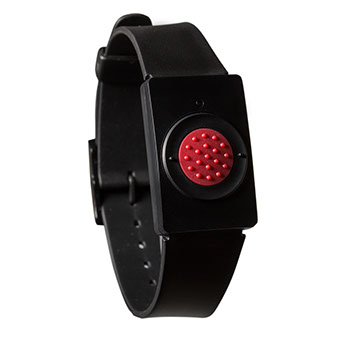 Im Notfall treffsicher auszulösen. Sicherheit rund um die Uhr. Wird am Handgelenk oder um den Hals getragen. Passt sich jedem Armumfang an.