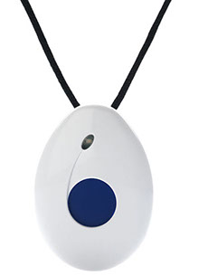 Das Notrufarmband, kann auch als Anhänger getragen werden. Abgesichert gegen Fehlalarm.